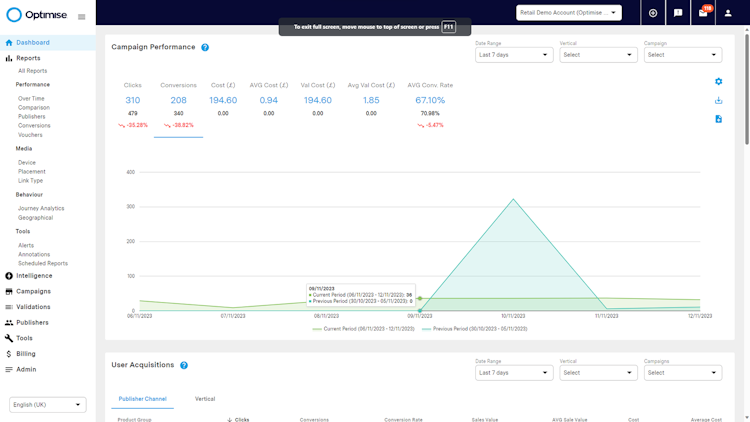 Optimise Partner Platform is a cloud-based tool designed to create profitable partnerships and manage partnership marketing campaigns to reach their ideal customers, grow sales, and streamline processes. Key features of the Partner Platform include partner reporting, which provides real-time insights and performance analytics to monitor campaign metrics.