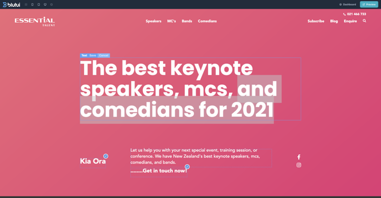 The Blutui Canopy in-page editor provides Agency clients and content management teams simple editing in real time.