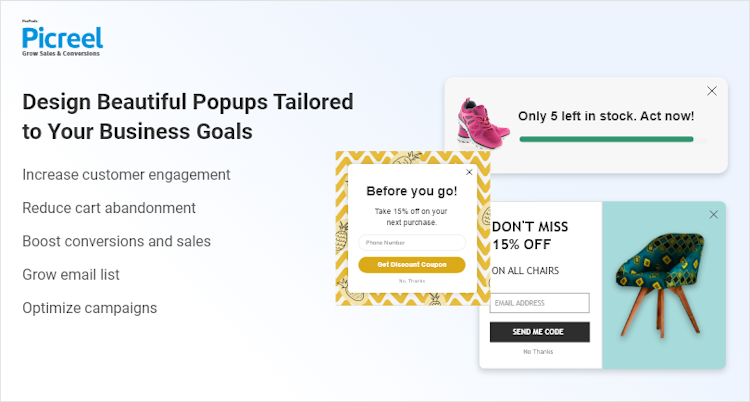 Picreel offers top-notch customer support, with highly skilled representatives available through live chat, email, and social media. Get the help you need when you need it to ensure that your marketing campaigns are successful.