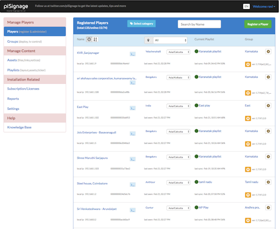 piSignage comes packed with a range of built-in features, including layouts, tickers, ad insertion, campaign scheduling, TV control, screen capture, and player shell. Organizations and system integrators across 140 countries have been using piSignage for various applications, such as video distribution, in-store promotion, campus information displays, corporate communication, digital menus, and dashboard streaming.