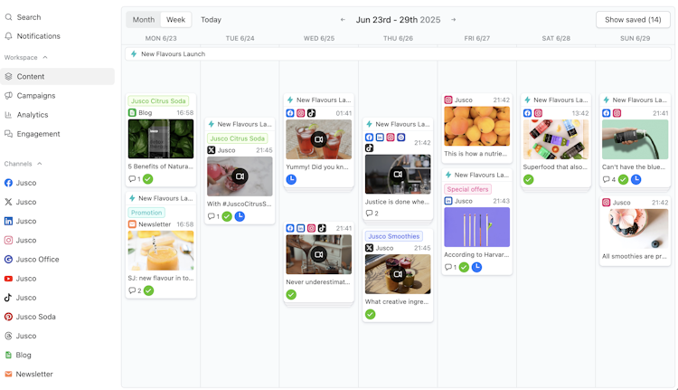 Content organization is supported through dedicated workspaces, labeling systems, and a centralized media library. The platform also offers analytics and reporting tools to monitor content performance across channels. Planable extends beyond social media, with support for blogs, newsletters, and emails — all managed within a unified marketing calendar. A mobile app is available for creating, editing, reviewing, and approving content from anywhere, ensuring workflow flexibility on the go.