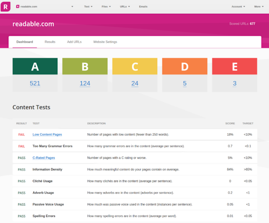 readable.io offers an API, which allows businesses to integrate the platform with several third-party solutions, including Dropbox and Slack. Users can automatically extract and analyze content across headers, footers, and other non-content text across the website. It also lets managers score URLs, documents, and emails.