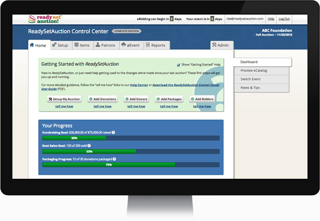 ReadySetAuction is a fully web-based auction software that empowers staff and volunteers of non-profit organizations to run silent, live, mobile, online fundraiser auctions cost effectively, themselves.