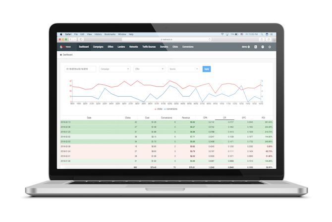 RedTrack.io is a SaaS affiliate marketing campaign management & analytics platform designed to aid affiliates and advertisers with tracking campaign performance and increasing ROI. The solution offers an easy to use interface with templates and presets and event tracking. Advanced users will benefit from drilldown reports, dashboards and AI-based SmartLinks optimization.
