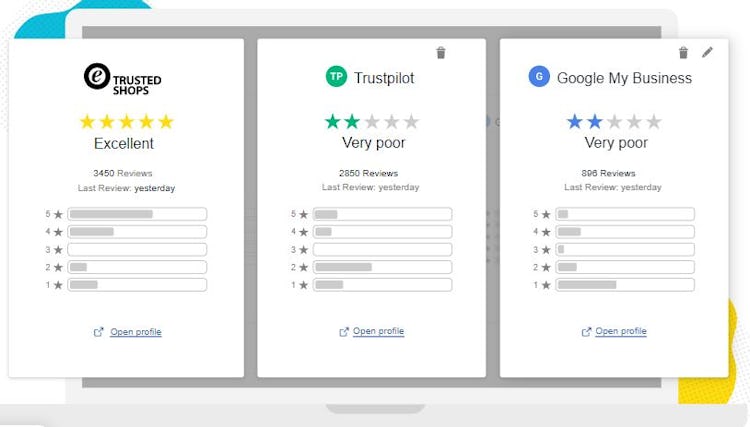 The software enables marketers to collect ratings not only for their Trusted Shops profile but also those of other providers. Through Reputation Manager, customers can leave feedback about their experience with the company on Google My Business and Trustpilot.