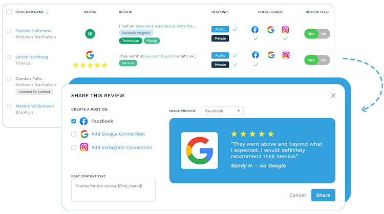 Social Sharing & Review Widgets: Highlight positive reviews on your website and social media to boost credibility and attract new customers.