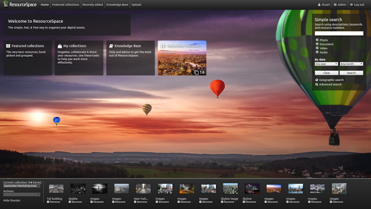 ResourceSpace is an open-source digital asset management (DAM) software which allows users to organize, search, watermark, share, download, and manage brand assets. The solution is designed for organizations across a range of sectors, including product marketing, charities, museums, and academic institutions, and can be hosted on-premise or in the cloud.