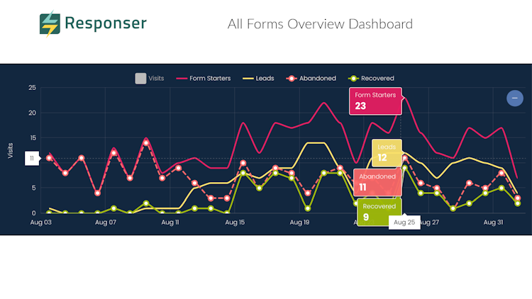 Responser is a comprehensive lead capture software that allows tracking prospect's journey from first form visit, through the entire form funnel with built-in conversion rate optimization. It also validates prospects email address and even phone number for over 200 countries.