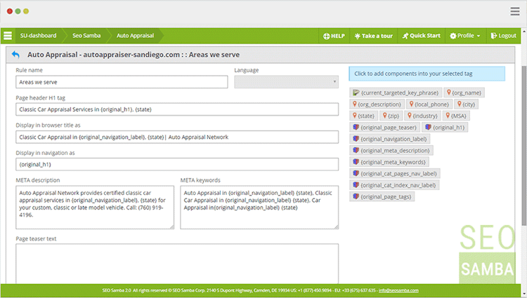 SambaSaaS can be used as a stand-alone solution or connect any number of SeoToaster or WordPress powered websites and enjoy automated Search Engine Optimization at scale.