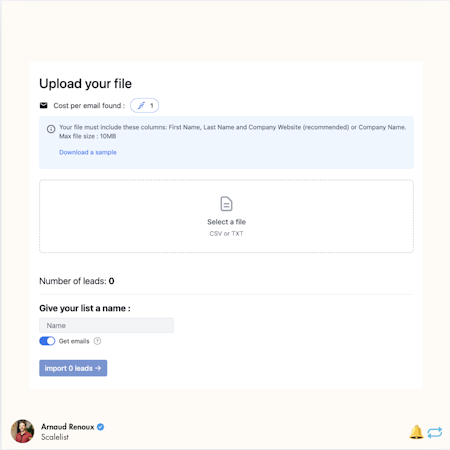 Scalelist is a Chrome browser extension that integrates with LinkedIn Sales Navigator. It helps users export and enrich their prospect lists. The extension allows users to extract leads from LinkedIn Sales Navigator searches and profiles in one click. It then enriches those leads by finding and verifying their professional email addresses and mobile phone numbers.