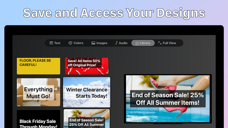 One of the standout features of Screen Canvas is its flexibility in customization. Users can choose from a wide range of preset colors or access custom color options, making it easy to match your brand’s identity. The app also includes a library of high-quality images, perfect for creating displays that grab attention. For businesses looking to elevate their signage even further, Screen Canvas also supports dynamic audio integration, offering a variety of soundtracks that can be incorporated into your designs.