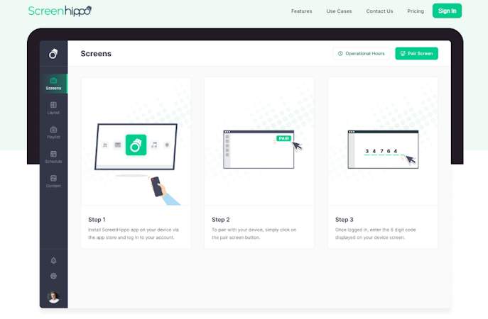 ScreenHippo lets users easily schedule their communication messages, create interactive content from pre-defined templates, and access real-time data with configurable application instances. Users can cast different types of media files across connected devices.