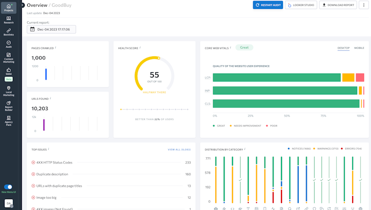 SE Ranking is the most advanced and unified SEO software. With SE Ranking you can cover the following tasks: Track your rankings in all the major search engines, for any location, language, paid and organic traffic; Run a comprehensive website audit, detect all critical errors and fix them; Collect, track, filter and disavow backlinks; Follow a step-by-step Marketing plan; Manage your social profiles and analyze them; Generate manual and automatic reports with information on any section from the platform.