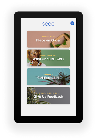 Seed allows cannabis retailers to create modern shopping experiences. Our tech brings brands to life, using static and interactive displays, such as TV menus, self service ordering kiosks, and more. Smart use of in-store technology increases transactional velocity and cart size, and decreases reliance on humans.