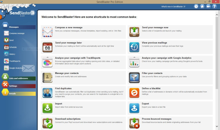 SendBlaster is a comprehensive bulk email software designed to assist in managing mailing lists and executing email marketing campaigns with a few steps. SendBlaster enables users to manage email lists and create personalized messages for bulk email campaigns. SendBlaster provides tools for crafting newsletters, organizing contact lists, and analyzing campaign performance through detailed reports.