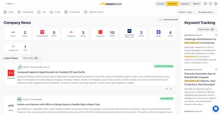 Signal Insights is a competitive intelligence platform designed to help businesses track and monitor competitors’ news, blogs, key website changes, email newsletters, and social media posts. It enables marketing teams to analyze Facebook, Twitter, and LinkedIn posts against competitors’ posts by comparing the engagement scores.