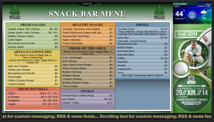 With Signera, users can manage and schedule digital content to be displayed around their organization. Multiple pieces of information can be displayed simultaneously on the same screen, with the ability to split displays into different sections. Both general and targeted content can be displayed, and changes can be made instantly across the signage network. Scrolling messages, full-motion video, event calendars, local weather, photo galleries, and menu boards are all supported, and users can control the layout and scheduling of information to be displayed.