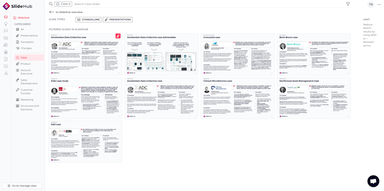 ▪️ The SlideHub platform has a fast and simple user interface focused on making finding assets easy and not purely for power users