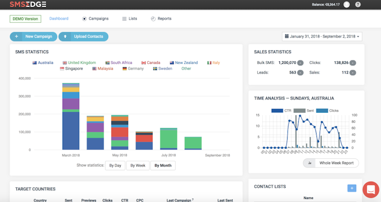 SMSEdge is a SMS marketing platform which uses routing technology, artificial intelligence and a proprietary scoring algorithm to help improve SMS delivery and campaign performance, while driving automated optimization in real time. SMS campaigns are tested and optimized before being sent in bulk, and with per-SMS tracking, marketers are able to pinpoint the origin of each conversion and see which customer clicked, signed up and bought their product.