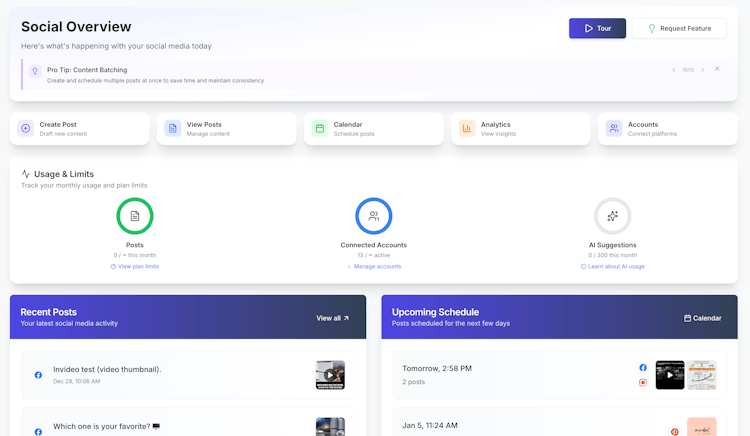 SocialCal is a social media management software that enables scheduling and management of posts across multiple social media platforms from a single dashboard. This scheduler supports a range of major networks, including X (Twitter), Instagram, Facebook, LinkedIn, YouTube, TikTok, Threads, Bluesky, Pinterest, and Telegram. The platform is designed for content creators, solopreneurs, and small teams that manage several social media accounts. It streamlines workflows by allowing content to be created once and distributed across various channels simultaneously.