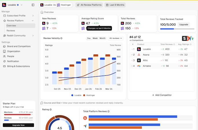 Subsig automatically uncovers all review sites and social channels that mention a brand without manual setup. It tracks ratings, review volume and sentiment trends across industry platforms while monitoring social media conversations on professional networks, forums and video channels. Real time sentiment analysis measures mention volume, reach and tone to present a continuous view of brand sentiment across digital ecosystems.