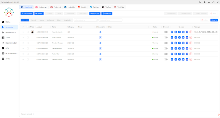 SuSocialPro is a powerful social media automation software designed for users who manage multiple accounts across different platforms. It supports Facebook, Instagram, Twitter (X), LinkedIn, Pinterest, YouTube, TikTok, and more—allowing full automation of tasks such as auto-follow, auto-like, auto-posting, auto-commenting, auto-DMs, content scheduling, and more.