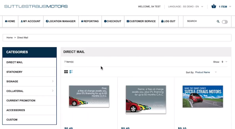 Suttle-Straus offers integration with various third-party, ERP, CRM, and digital asset management (DAM) systems, enabling businesses to access, manage, and order marketing materials. Designers can convert media items into printable PDF formats by using multiple options such as step/repeat for page collation, data merging, image output quality, and security settings.