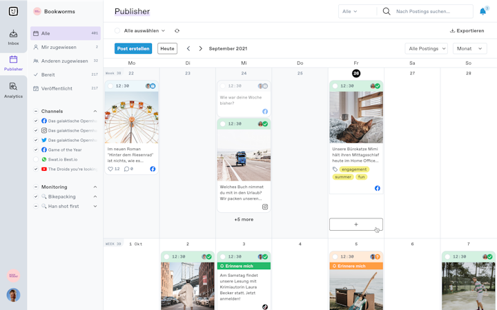 Account managers can use the online dashboard to schedule content for clients, answer inquiries posted by followers and generate performance reports. Swat.io lets users publish content on channels such as Facebook, Twitter, Instagram, LinkedIn, YouTube, Snapchat, Tumblr and Vimeo.