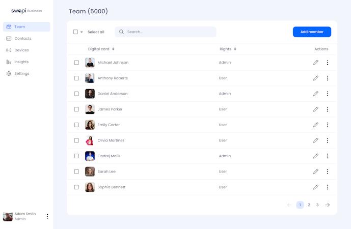 With Swopi Business, companies can establish a cohesive corporate identity by customizing digital business cards to reflect their unique brand. The platform also provides total control over card ownership, enabling administrators to assign, update, or deactivate digital cards and QR codes as needed. This flexibility ensures businesses can keep their contact information accurate and up-to-date, even as team members join or leave the organization.