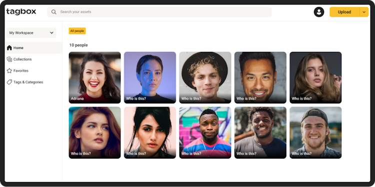 The software features deep image search powered by artificial intelligence that automatically detects and tags people, objects, and scenes within uploaded assets. A facial recognition system enables identification and grouping of images by individual subjects, while custom AI tagging allows organizations to train models to recognize industry-specific elements such as logos, products, or branded materials. Users can supplement automated metadata with manual tags for campaign names, photographer credits, location information, and project identifiers through an integrated tag management system. Advanced search and filtering tools support natural language queries and metadata parameters for rapid asset discovery.