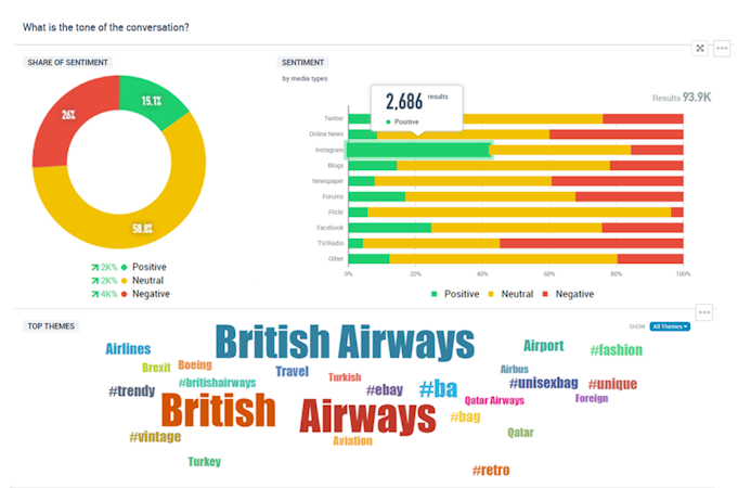 The Talkwalker platform comes with an AI-based sentiment analysis tool, which can interpret human emotions in brand mentions across online, print, social, radio, and TV content. Brand managers can track discussions across online forums, receive alerts for unusual activities, access trend prediction charts, and respond to comments in real-time.