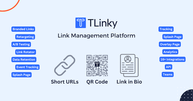 TLinky helps handle link management, URL shortening, QR code generation, and link in bio page building in one seamless platform. TLinky allows marketers, educators, small businesses, influencers, and creators to optimize marketing campaigns. It offers the following features: - URL shortening: Transform lengthy URLs into short, shareable links. - QR code generation: Generate dynamic, customizable QR codes for your marketing campaigns. Analyze statistics, optimize your marketing strategy, and increase engagement. - Link-in-bio page builder: Create bio pages for your social media profiles effortlessly. - Branded domains: Establish trust and brand recognition with custom domain names. - Tracking & analytics: Gain deep insights into link performance, audience behavior, and campaign success with comprehensive tracking tools. - Retargeting: Re-target your audience effectively by targeting users who have previously interacted with your links. - Integrations: Seamlessly connect with your favorite marketing tools, including Google Analytics, Google Tag Manager, Google ADS, Facebook Pixel, Linkedin Pixel, and more. - Splash page: Create first impressions with visually stunning splash pages that engage your audience instantly. - API: Leverage our robust API to customize your link management experience and tailor it to your unique needs. Explore a wide range of additional features to enhance your digital marketing strategies, from A/B testing, overlay page, data retention, A/B Testing, link rotator, password protection URL, targeted reach, device targeting, custom alias, Geo-targeting, tracking pixels, UTM Builder to advanced analytics. TLinky enables marketers to streamline their link management efforts, enhance campaign performance, and boost conversion rates. Influencers can create beautifully curated bio pages to showcase their content effectively. Businesses can establish brand authority, increase customer trust, and drive traffic with custom domains and QR codes. Small to large enterprises, from eCommerce to SaaS companies, can harness the power of TLinky to optimize their online presence.