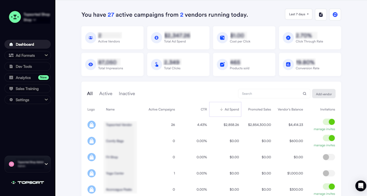 We give the power to marketplace owners to control the ad spaces on their websites. Our simple and ready-to-use product connects to the marketplace very easily and fast. Topsort offers a seamless ad experience for the marketplace, vendors, and users. All without the need for cookies.