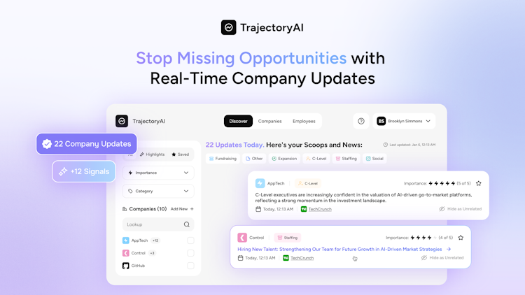 TrajectoryAI is a competitive and market intelligence software platform that delivers automated AI-powered insights about competitors, clients, and business partners. The platform generates weekly analytical snapshots that transform disparate market signals into structured, actionable intelligence. It is designed to support small to medium sized business teams with ten to two hundred employees, including sales leaders, account managers, venture capital and private equity analysts, and executive leadership teams.