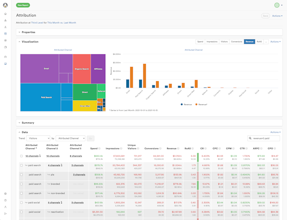 - Breaks down data silos and biased KPIs to provide a single source of truth for marketing performance.