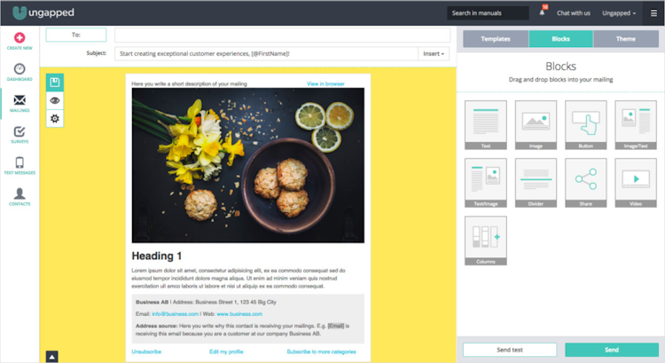 Ungapped is a complete platform for email marketing, invitations, surveys, signup forms, and text messages. Key features enable users to create and send mailings, newsletters and invitations, and get rich statistics and insights on emails sent, opened, clicked, bounced and more.