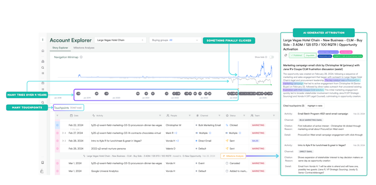 Upside integrates with existing go-to-market systems such as Salesforce, Marketo, HubSpot, and Gong to compile a unified view of customer interactions without altering established workflows. The platform’s forensic attribution approach reconstructs occurrences from available signals and infers missing touchpoints rather than relying solely on captured data. Its knowledge graph architecture maps relationships between people, accounts, touchpoints, and outcomes and avoids the limitations of rigid schemas or table-based storage that traditional customer data platforms and business intelligence tools exhibit.