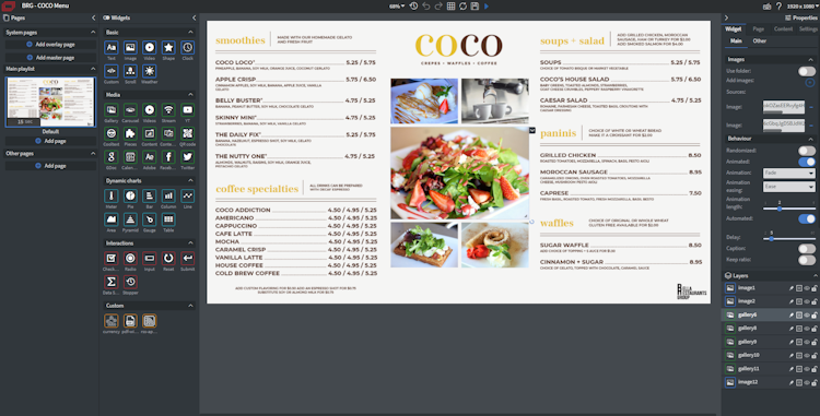 With an intuitive drag-and-drop editor, users can quickly build content like video walls, interactive kiosks, and digital menu boards. The software integrates with Google, Microsoft, and RSS feeds to bring external data sources into signage content. Users can also create interactive touchscreen experiences with the no-code interactive content builder.