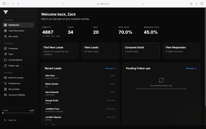 Whali is a cold email automation platform that employs artificial intelligence to generate hyper-personalized outreach campaigns. It leverages a comprehensive profile enrichment engine that analyzes professional histories, social media activity, company news, and industry trends. It is designed for applicants seeking direct access to decision makers and for professionals aiming to expand networks. It supports automated follow-up sequences and tracks every stage of response.