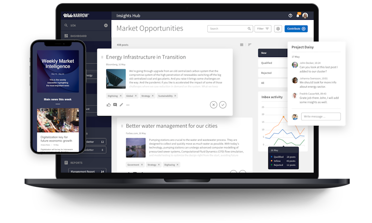 Wide Narrow is the umbrella for all your intelligence programs, breaking down silos across Market and Competitive Intelligence, Strategy, Innovation, Regulatory Intelligence, and more. Leveraging a 3-step analysis workflow, our platform helps you convert external information into internal insights. Collect relevant information at scale, co-create insights, and share those perspectives with your stakeholders in dynamic deliverables. Are you ready to join the dynamic intelligence revolution with Wide Narrow?