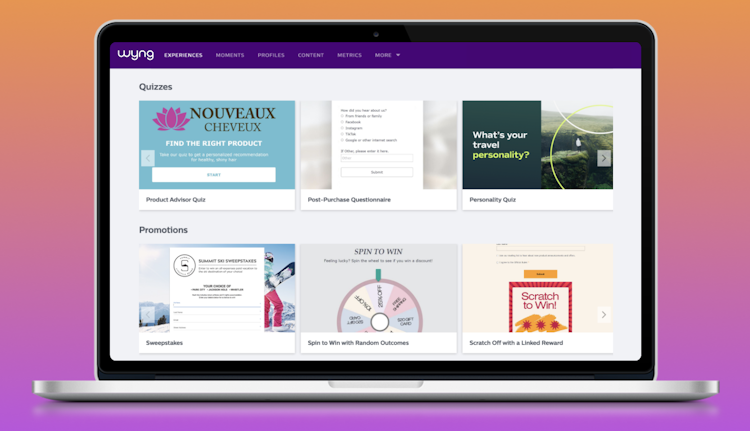 With Wyng marketers can easily build interactive digital experiences that engage customers at the right moments, transparently earn preferences and other zero-party data, and personalize in real-time. Wyng includes: