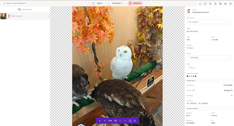 • Collaborate with visual feedback directly on assets. Click anywhere on an image to leave a comment exactly where you mean it. Mark precise timestamps in videos. Track which feedback has been addressed with comment resolution. See who's online and viewing the same assets in real-time with presence indicators.
