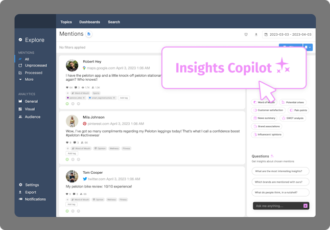 "What they say" – with YouScan's powerful text analysis capabilities, including AI Agent – Insights Copilot, understanding consumers' opinions about brands, competitors, and events becomes effortless.