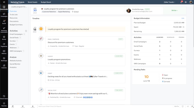Unify your team on one platform and manage your marketing more effectively with Zoho Marketing Plus. The platform combines email, SMS, social media, surveys, events, webinars, and more, and offers a centralized repository for content creation and brand asset management so that you can manage your entire marketing operation from one place.