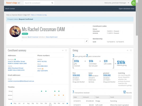 Raiser’s Edge NXT is a cloud based fundraising & donor relationship management software designed to cater the needs of small and midsize nonprofit organizations that offers donor management, contact management, database management and automatic payment functionalities within a single solution. The campaign management functionality of Raiser's Edge NXT enables marketers to send analytics driven campaigns, collect online donations, initiate crowdfunding efforts and measure campaign performance. The donor management functionality of the software enables users to remotely track and manage the performance of the portfolio and pipelines, track multiple touchpoints, assign actions, find major donors and estimate how much to request from them. Raiser's Edge NXT's features include database management to help users keep their organizational data clean and accurate whilst data enrichment services help users automatically update contact information. This in turn helps users to reduce their campaign bounce rates. With the help of customized reporting and dashboards to accurately track the health of the organization’s fundraising efforts, users gain a complete view of all their fundraising activities and are better equipped in making decisions regarding their donor management practices.