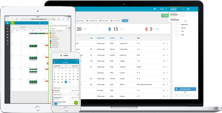ChurchDesk is a cloud-based church management solution, supported by native apps for iOS and Android devices. The all-in-one, fully centralized software boasts a multitude of tools for engaging and supporting congregation members. Maintain a rich contacts database of “People” and a secured, ISO-compliant facility for recording not just address and personal information but a module with full communication features. Contact member groups with customized update emails, SMS messages and scheduled newsletters while keeping a receiver’s log of who gets what and when. ChurchDesk administrators are given authenticated “Intranet” dashboard access with virus-checked file management and instant messaging capabilities for team discussion.