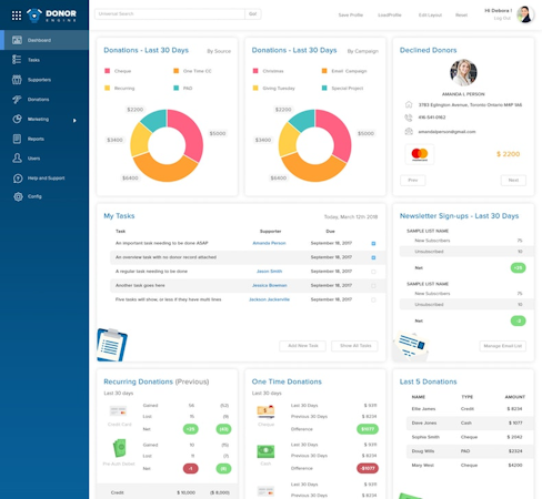 Donor Engine lets organizations recruit, schedule shifts, and communicate with volunteers through a unified platform. It facilitates integration with several third-party solutions such as Quickbooks, Eventbrite, Double the Donation, and more. Plus, it lets users connect the platform with payment gateways including PayPal, Payeezy, and Authorize.Net, to facilitate online donations.