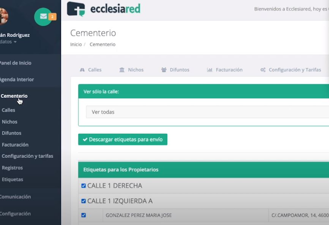 Ecclesiared allows dioceses to communicate with parishes via messages and create a church website with information about schedules, news, and events. Churches can manage and maintain available or occupied niches, receive donations from website visitors, and digitize religious records to send, locate, or print them according to requirements. Parishes can also access official documents, issue tax receipts for donors, generate remittances, and maintain a registry of members within religious associations.