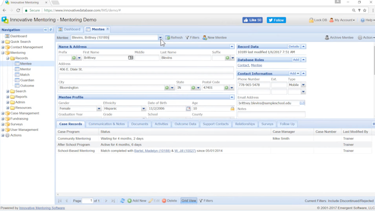 Innovative Mentoring Software is a business management solution aimed at youth mentoring programs, with the tools for monitoring contacts, mentors, and mentees. With features including a self-service mentor portal, case notes, mentor applications, matching assistance, screening processes, custom reporting, time tracking, automatic reminders, and communications management, Innovative Mentoring Software aims to streamline and simplify the day-to-day tasks of youth mentoring businesses for both staff and mentors.