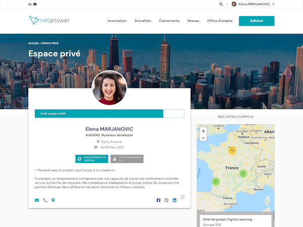 Netanswer is a complete platform that offers all the tools necessary to manage, develop, and animate an alumni community and support groups. It is customizable and easy to use so you can adapt it to your specific needs.
